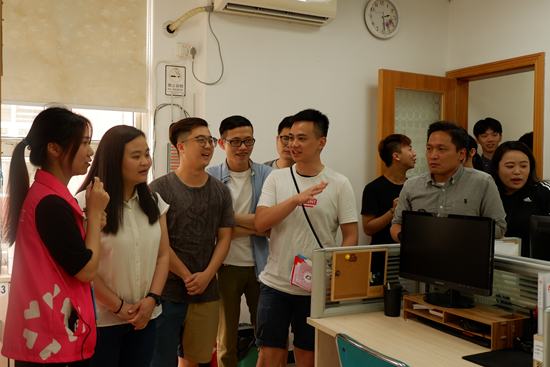 活动上半场,在永和街社工服务站标准化讲解专员的带领下,香港青年学生深入到社工站各个功能场室,了解其设置及服务情况,并作互动交流。其后,永和街社工服务站刘鹏主任分享了政府政策对专业社会工作服务的推动作用,让香港青年学生对广州的社会工作服务模式及相关政策有了基本的认识。