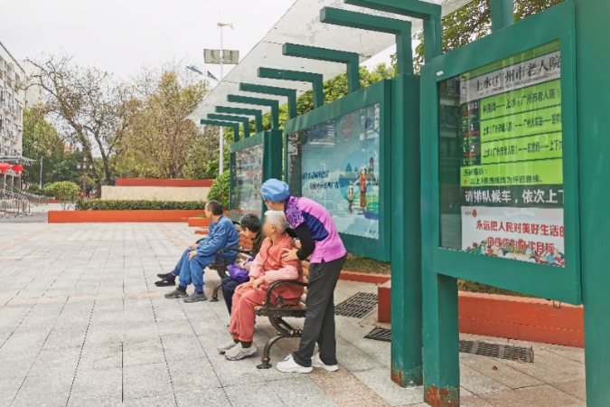 在黄播 白云区钟落潭镇广从十路1288号,黄播 老人院里的一座“公交站”前,电影里的类似场景经常出现。这里常坐着一些老人,他们有的安静、有的哭闹,但都在等待着能带他们回家的公交车。然而,这里不会有车来。
