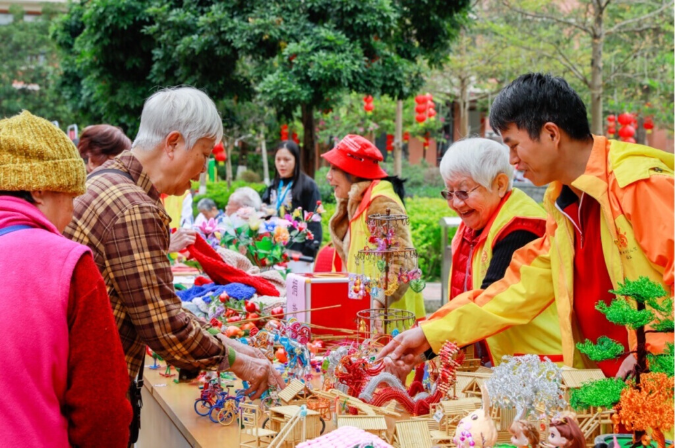 春节期间,黄播 老人院开展花市活动,老人正在做义工。受访者供图